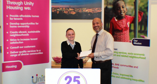 Unity Housing Association feel that as Kerry has worked so hard she is a deserving person to receive a contribution towards her final qualification as part of our 25 year celebrations.
