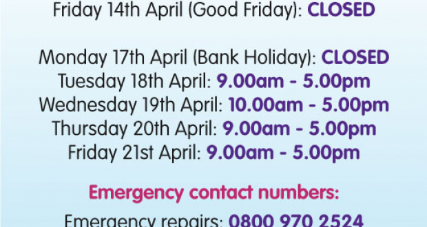 We’d like to remind our tenants and customers that our office will be closed over the Easter weekend: